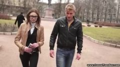 Молоденькая блондинка испытывает удовольствие от огромного члена